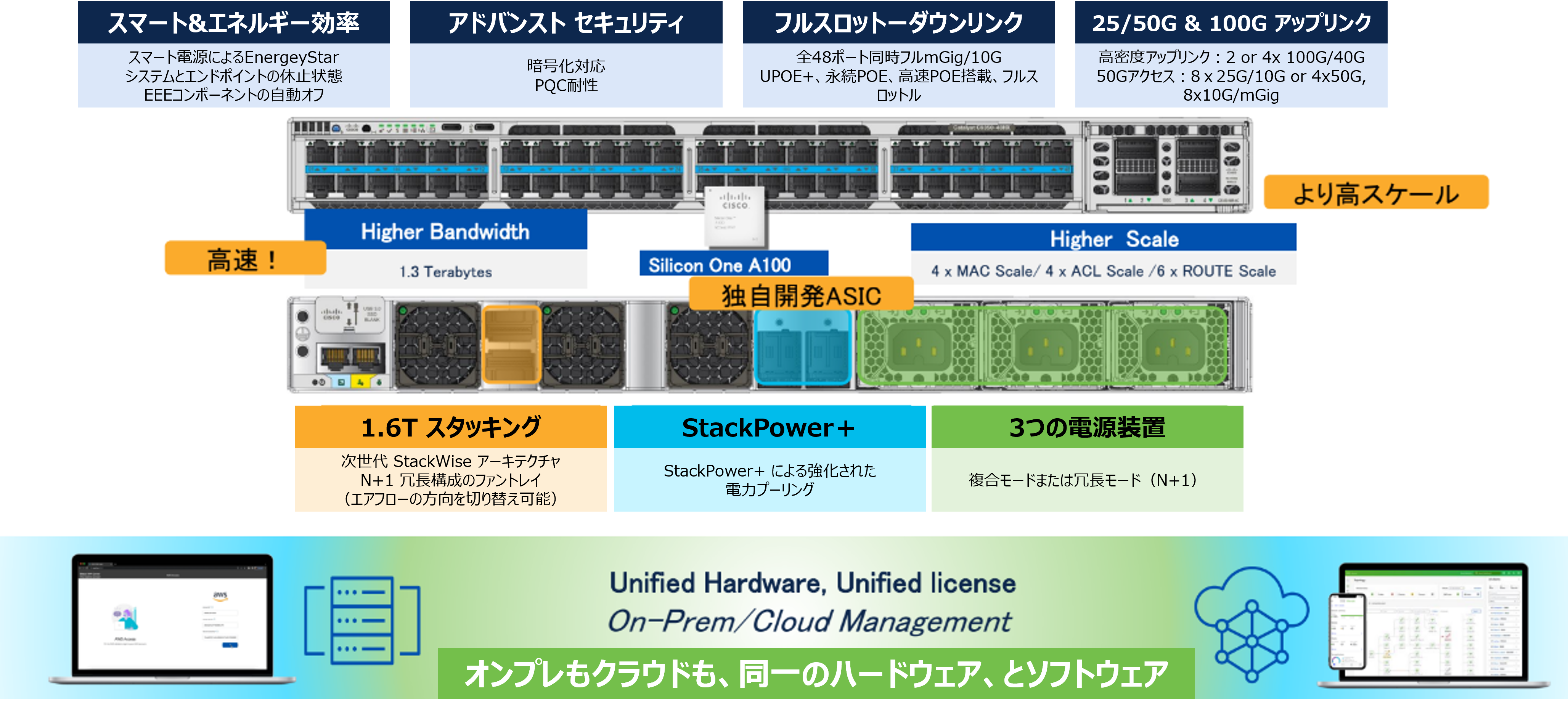 • StackWise-1.6T(1.6Tbps のスタック帯域)