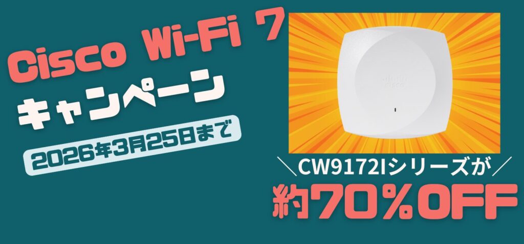 条件を満たした場合、Cisco Wi-Fi 7が通常価格より最大約70%OFFになるキャンペーンを実施します。